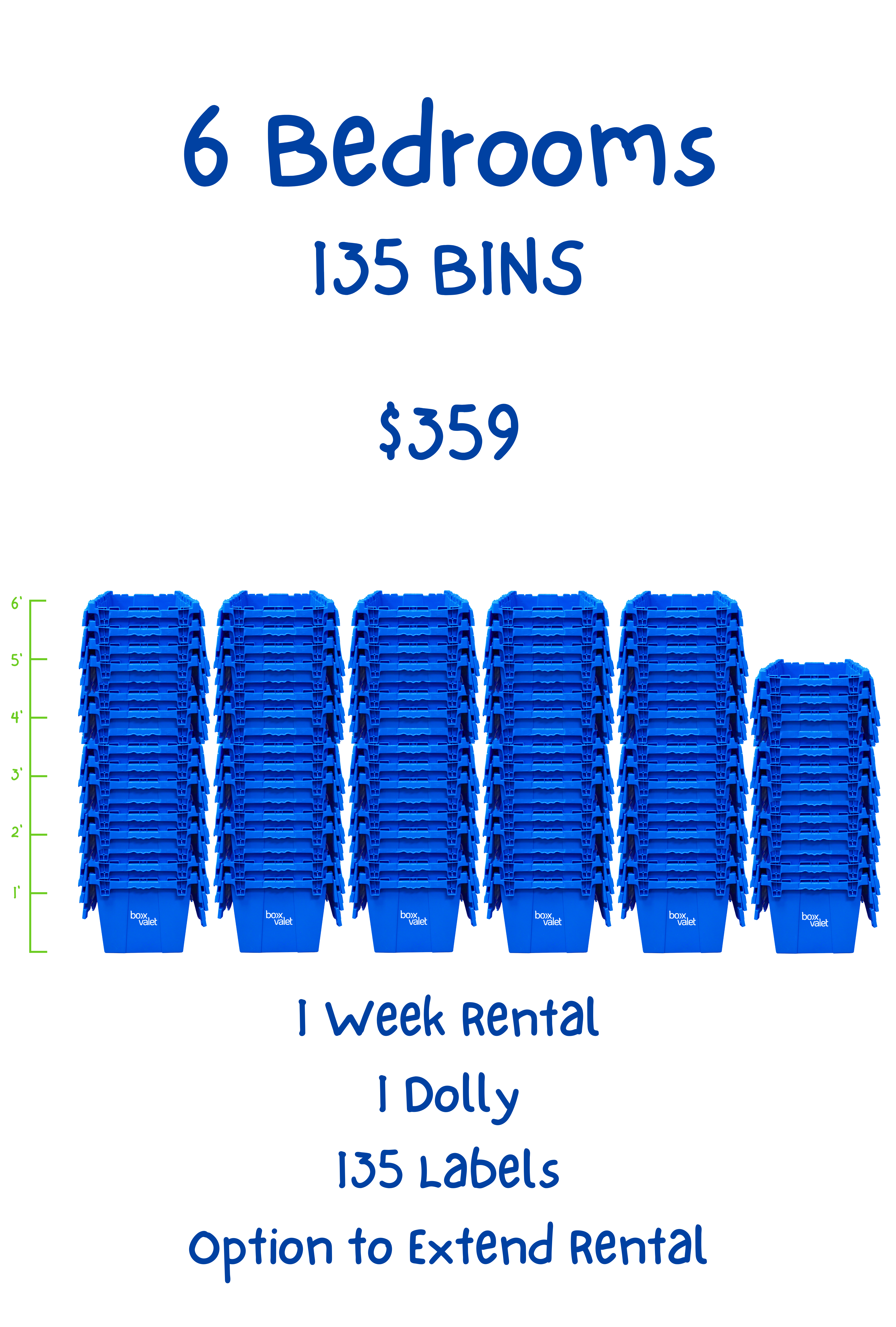 The minimum rental duration for BoxValet bins is 1 week. We recommend starting your rental 3 days before moving day to give yourself plenty of time to pack, with moving day typically falling on day 4. This schedule allows days 5 and 6 for unpacking at your new location for a smooth, stress-free experience.